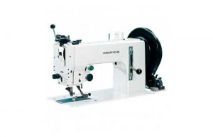 C.C.R. vous propose cette machine à coudre Dürkopp Adler 669-180112 à bras libre canon, coupe fil automatique électropneumatiques, points d’arrêt et lève pieds électropneumatiques.