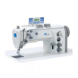Piqueuse triple entrainement 867-290322 industrielle 2 aiguilles, points noués, plusieurs possibilité d’écartement de 4 à 50mm, coupe fils électromagnétique, deuxième longueur de point et d’une deuxième tension de fil intégrées.
